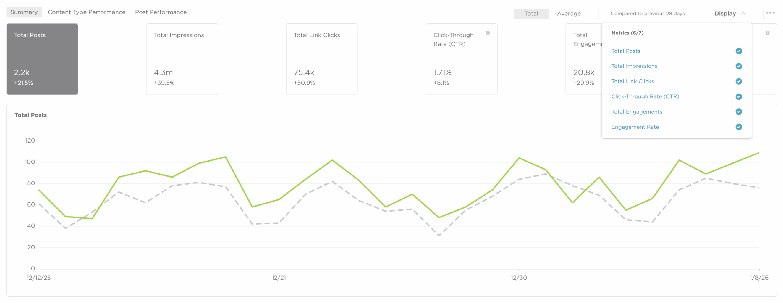 - Customizable Performance Views: Tailor your dashboard to the metrics that matter most to your newsroom. Toggle between total and average views for posts, impressions, CTR, and engagement rates to get the exact insights you need.